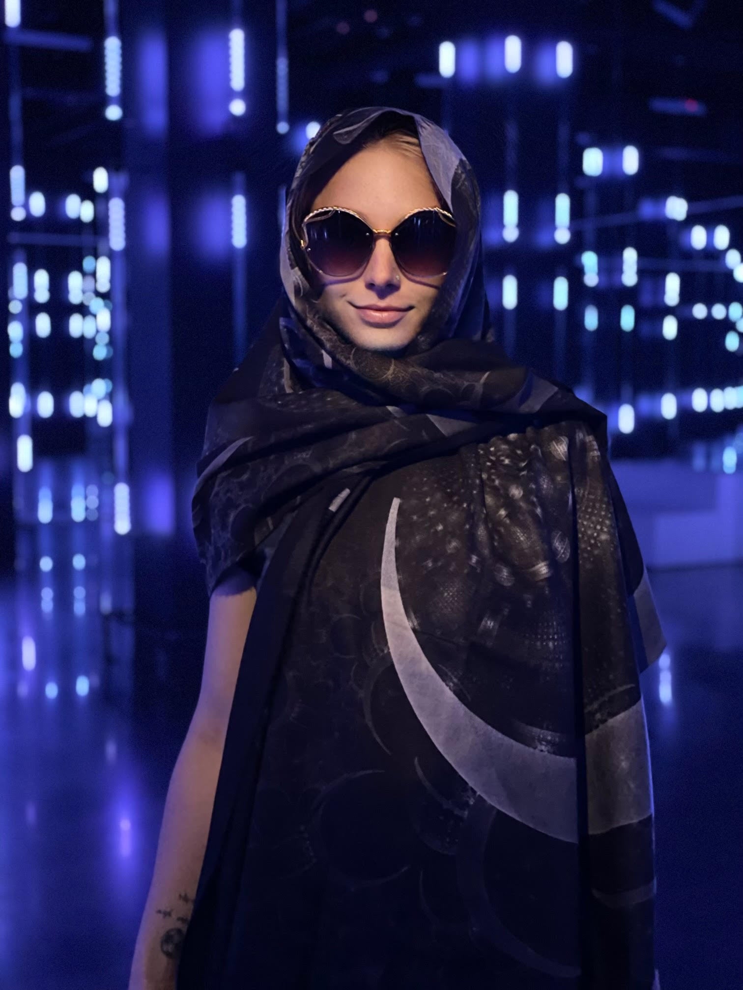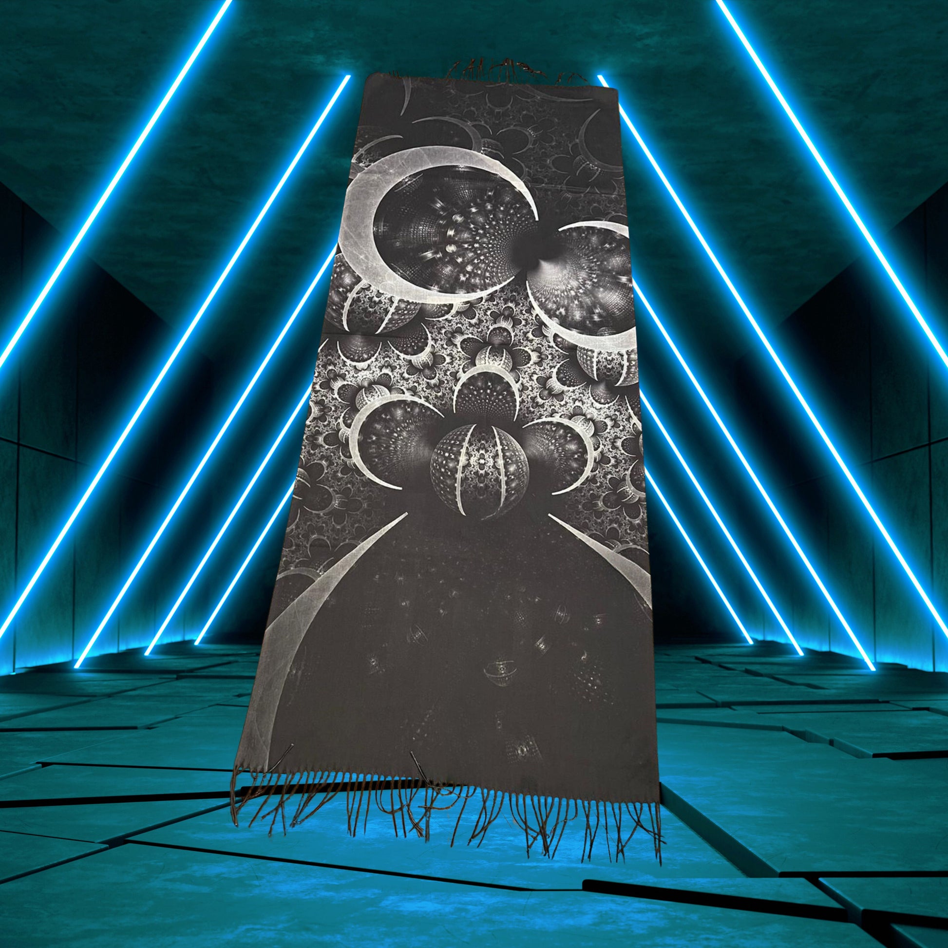 Embrace the dark allure of the Crescent Void Pashmina and add a unique, ethereal element to your festival attire. Let the moonlit crescents guide you as you dance the night away to the rhythm of your favorite techno beats.