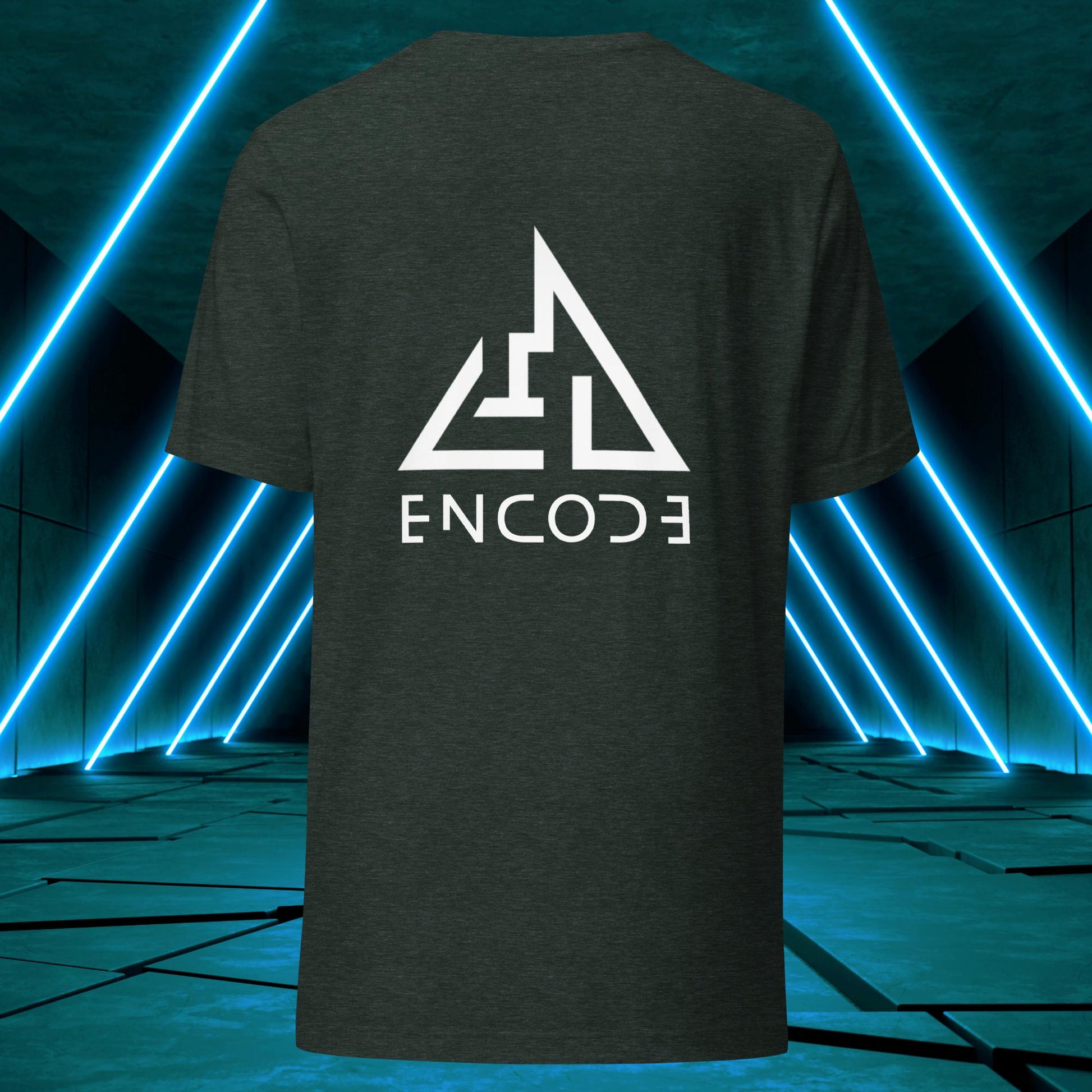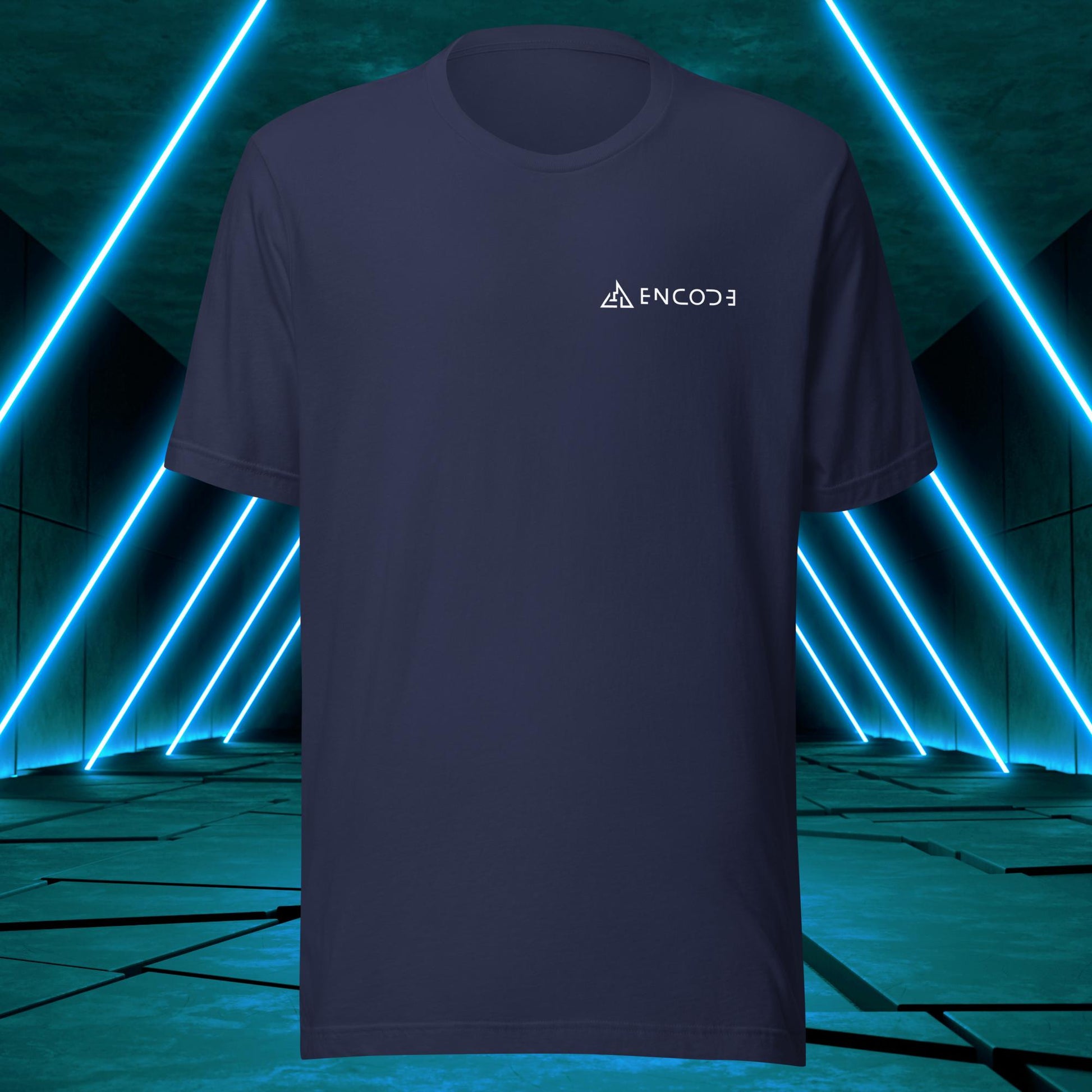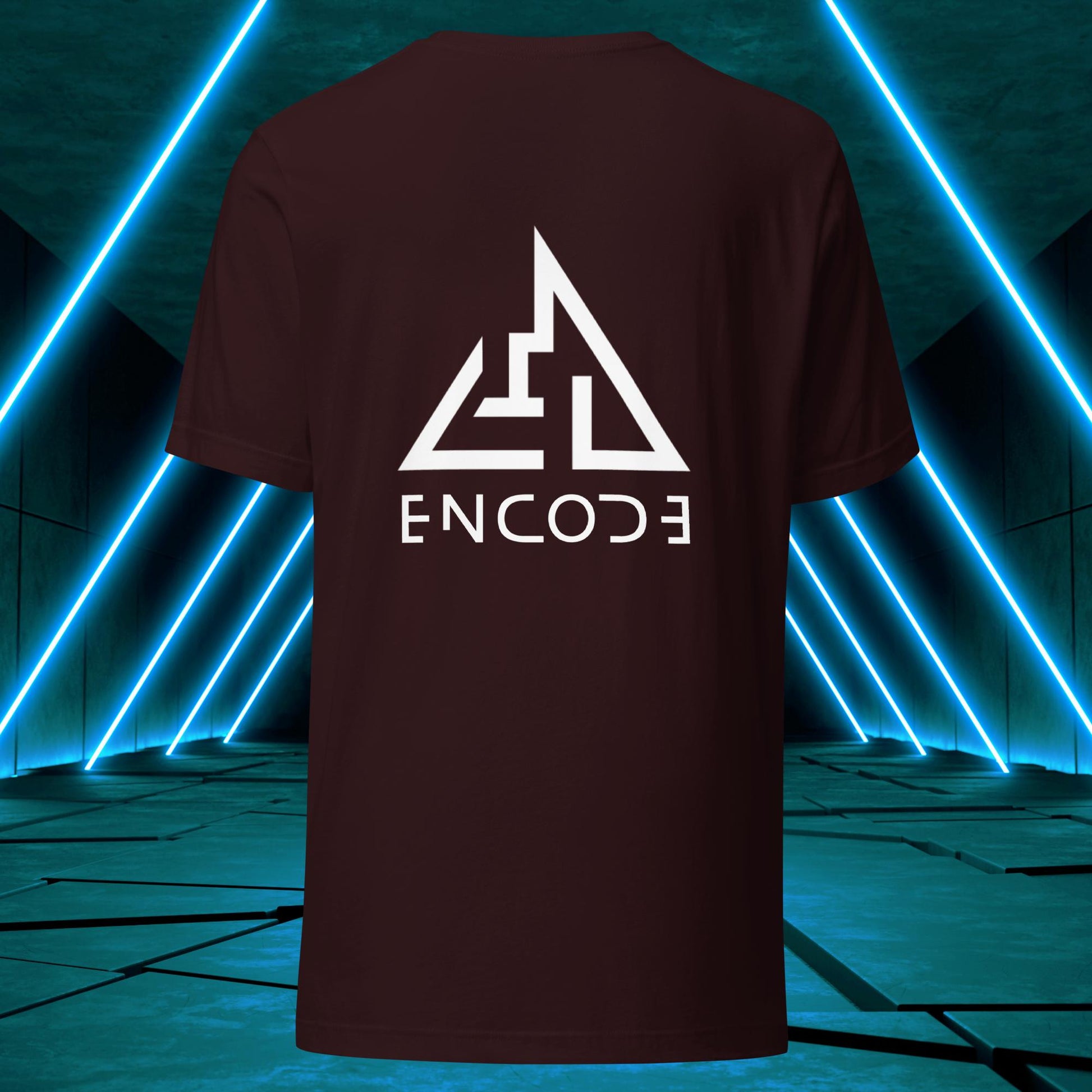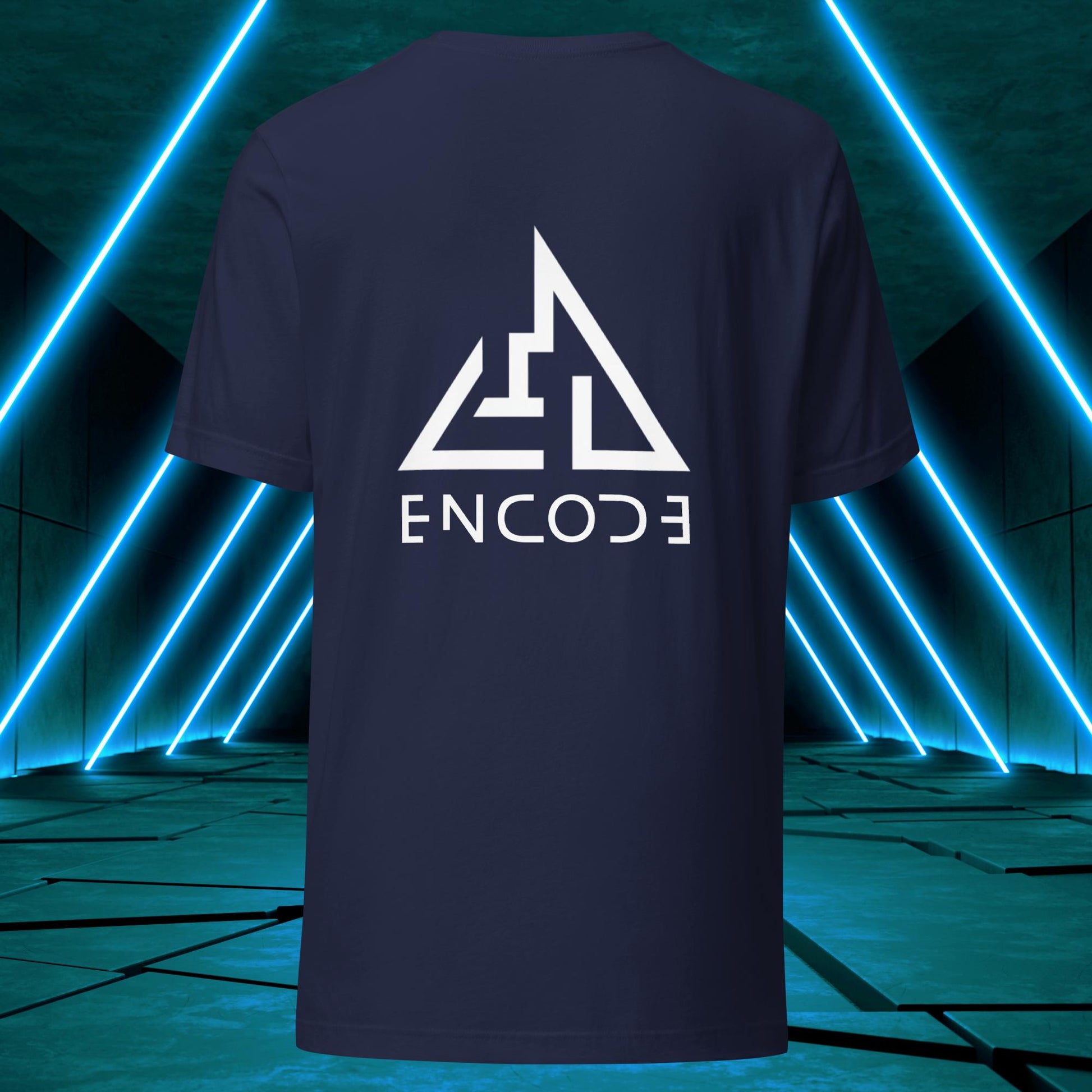 Featuring a sleek and modern design, this t-shirt showcases the "Encode" emblem in a prominent position on the back of the shirt. The emblem is a simple, yet bold representation of the "Encode" brand, with its strong lines and geometric shapes.