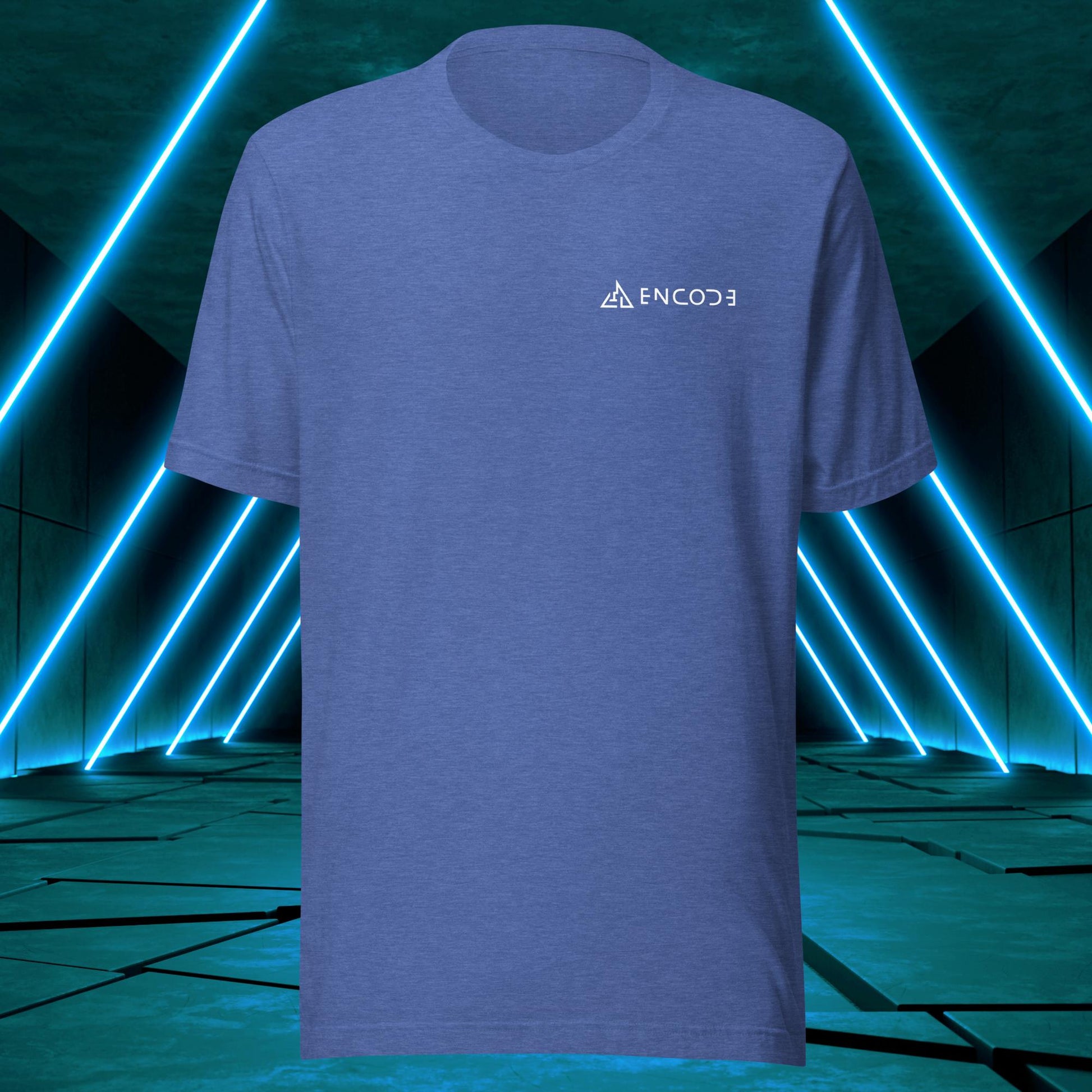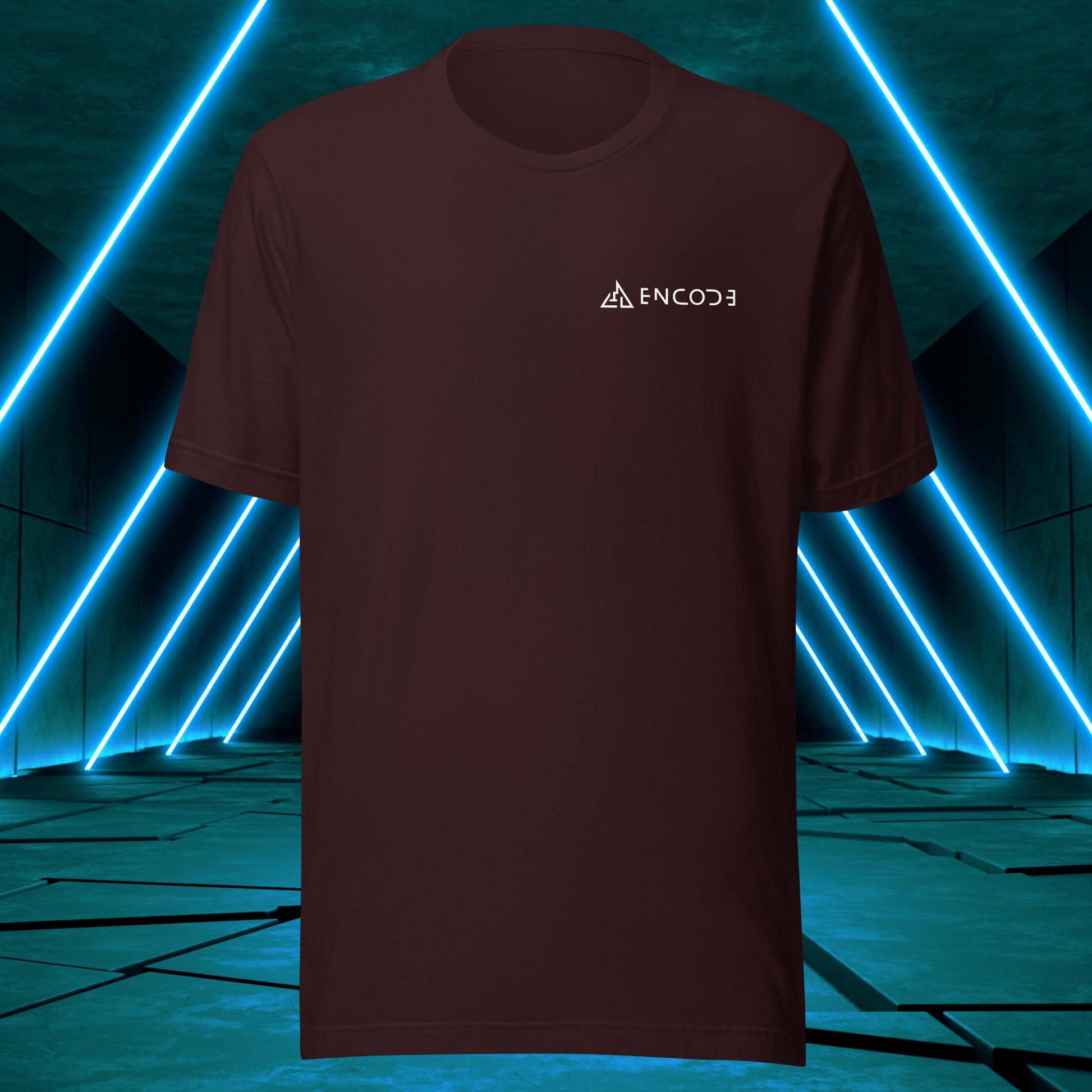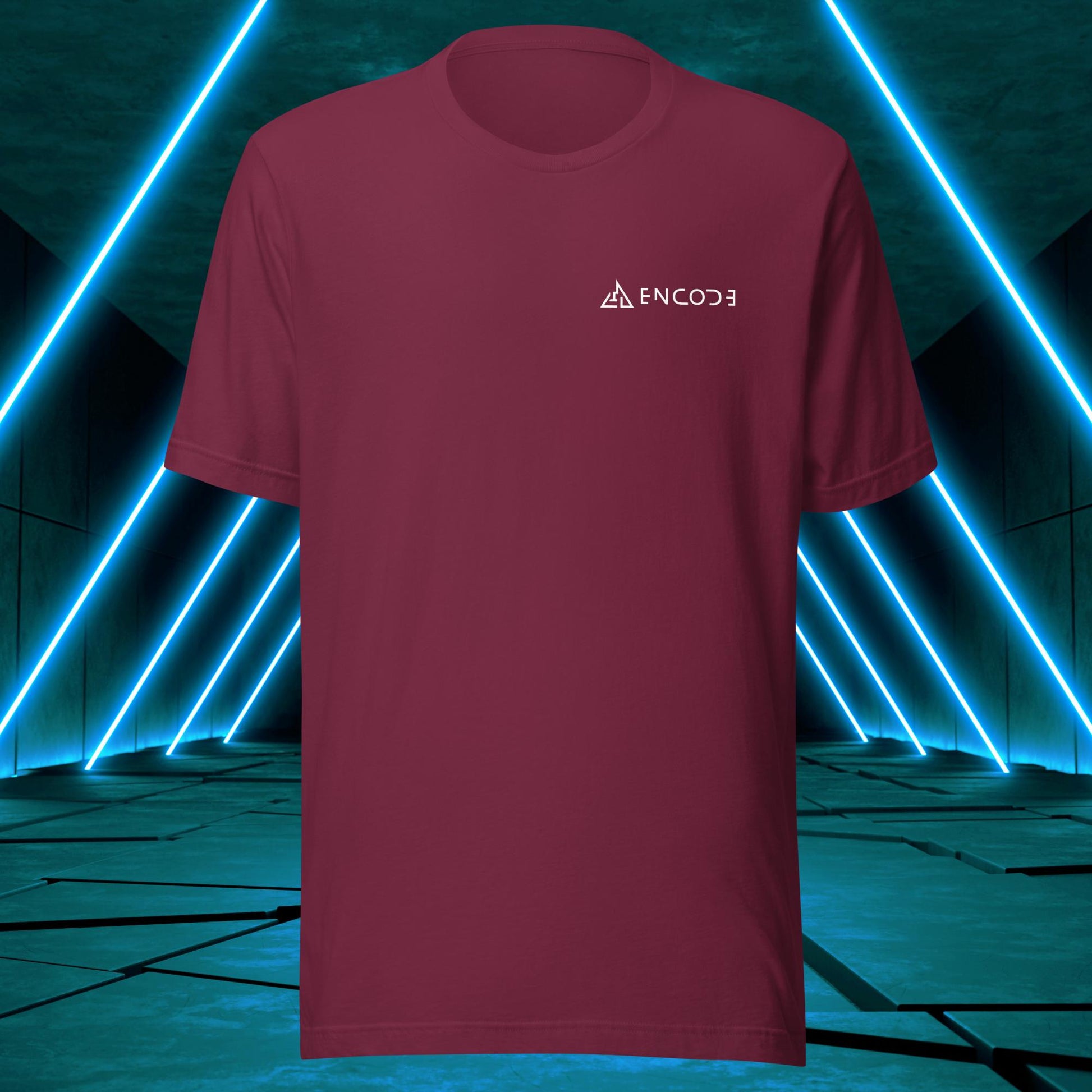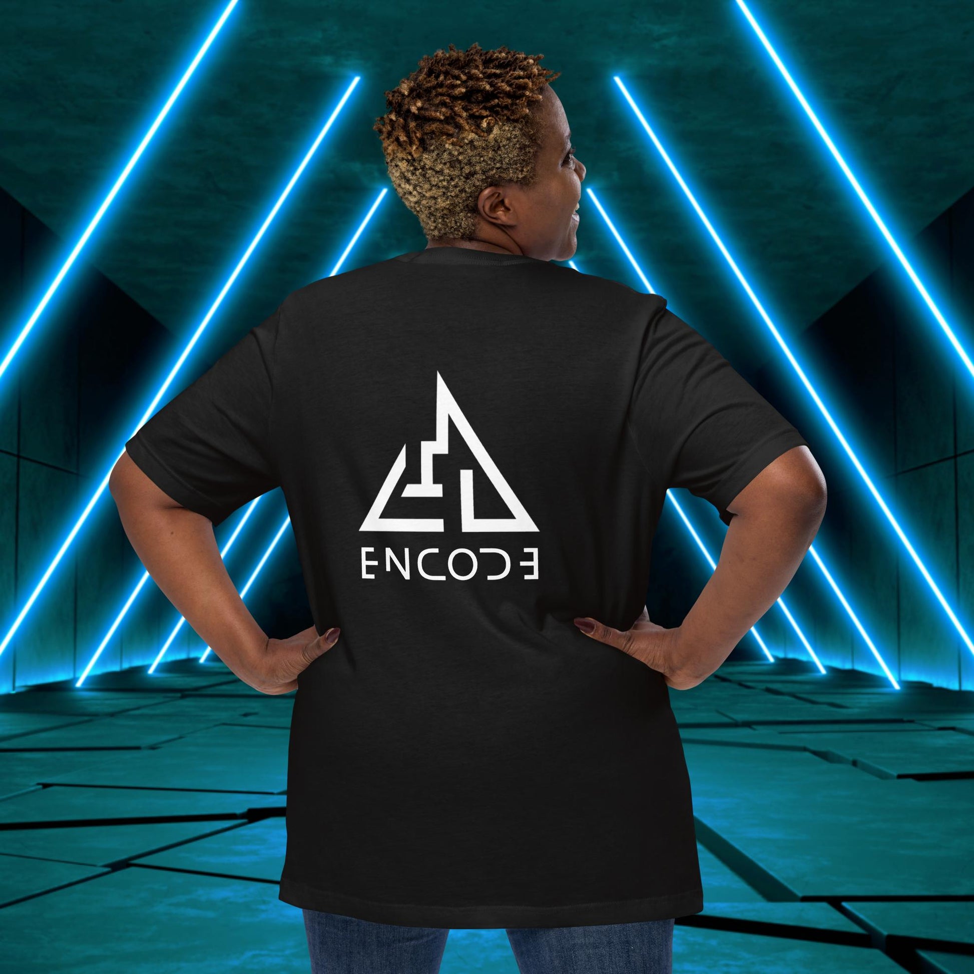 Featuring a sleek and modern design, this t-shirt showcases the "Encode" emblem in a prominent position on the back of the shirt. The emblem is a simple, yet bold representation of the "Encode" brand, with its strong lines and geometric shapes.