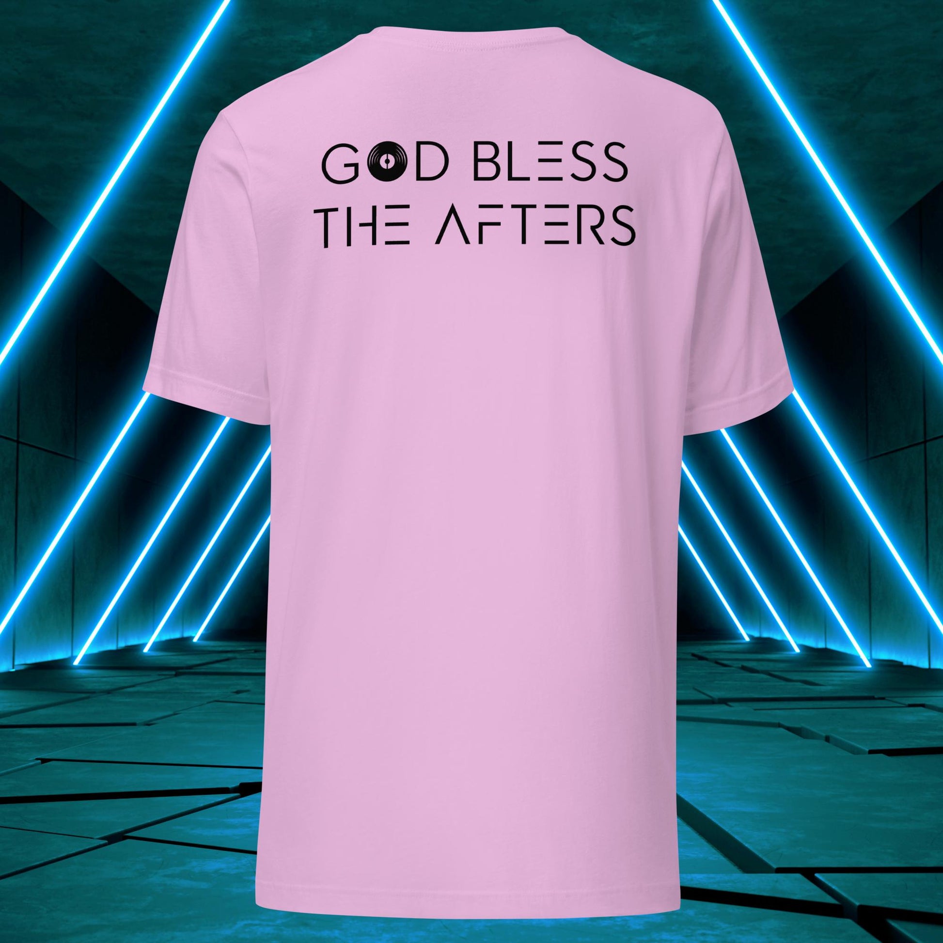 Featuring a bold and playful design inspired by the uplifting atmosphere of the after-party, this t-shirt showcases the phrase "God Bless The Afters" in a modern font that evokes the party animal in you!