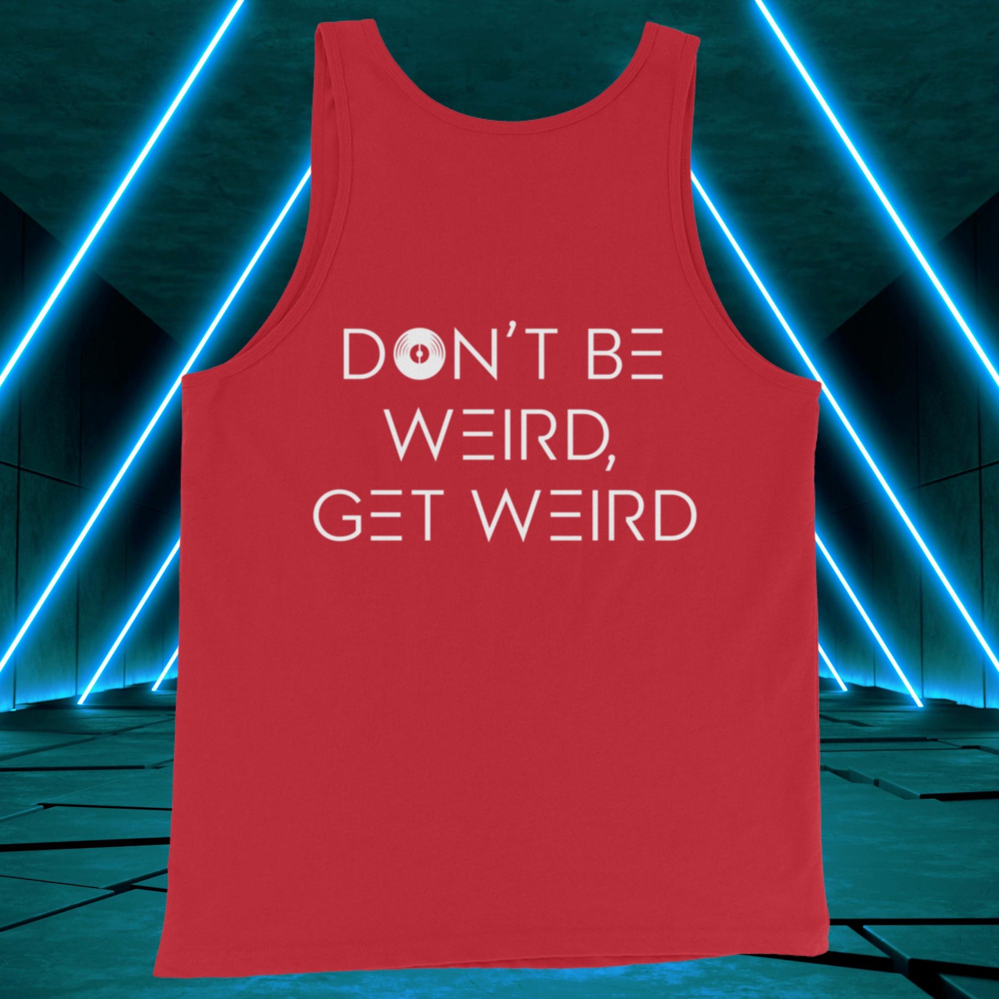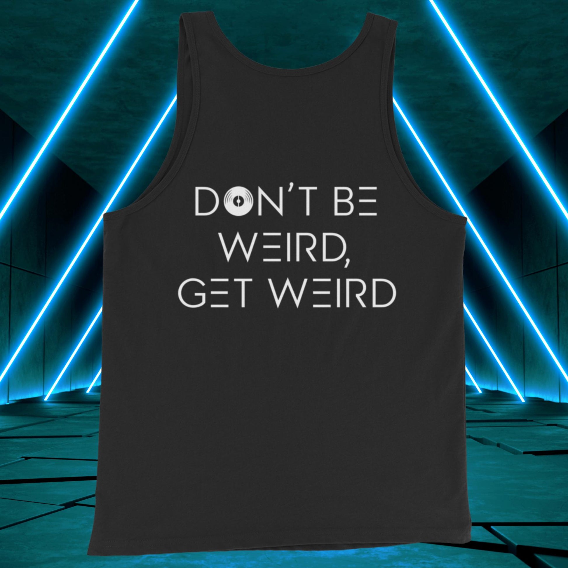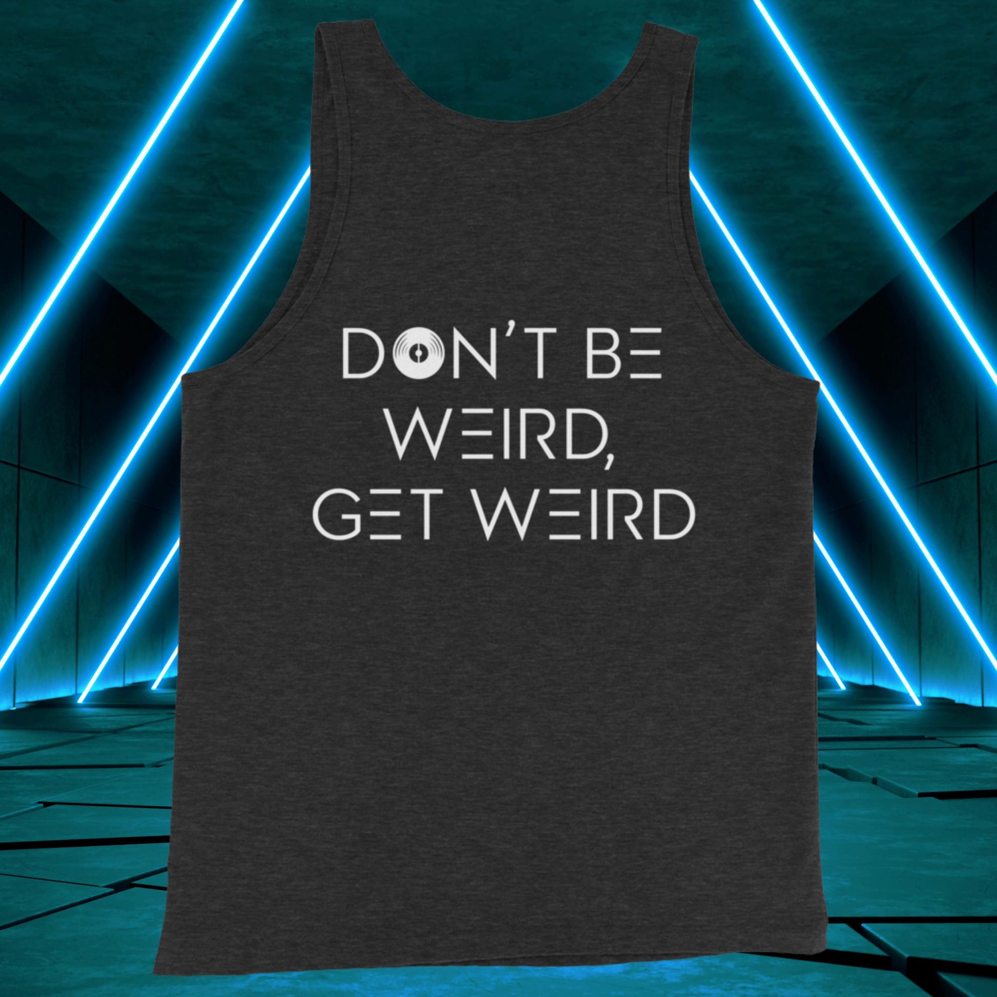 Embrace your eccentric side with the Men's Don't Be Weird, Get Weird Tank Top, a bold and playful accessory for those who aren't afraid to let loose and get weird. This tank top features the quirky phrase 'Don't Be Weird, Get Weird' printed across the chest, encouraging you to let your true colors shine.