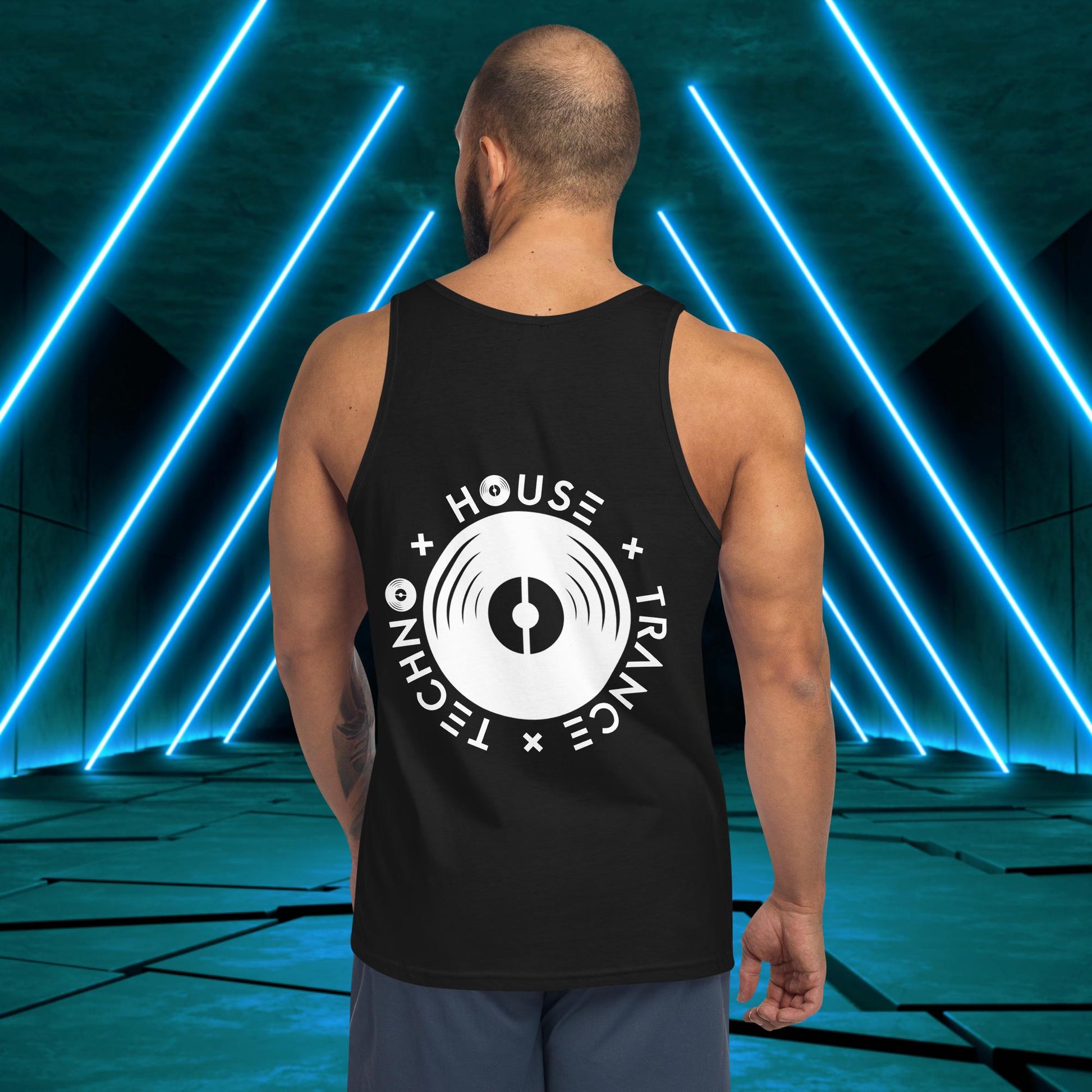 Elevate your festival style with the Men's House x Techno x Trance Emblem Tank Top, a sleek and comfortable accessory designed for EDM aficionados. This tank top features a bold emblem with the phrase 'House x Techno x Trance', showcasing your appreciation for the genre's diverse and dynamic sounds.