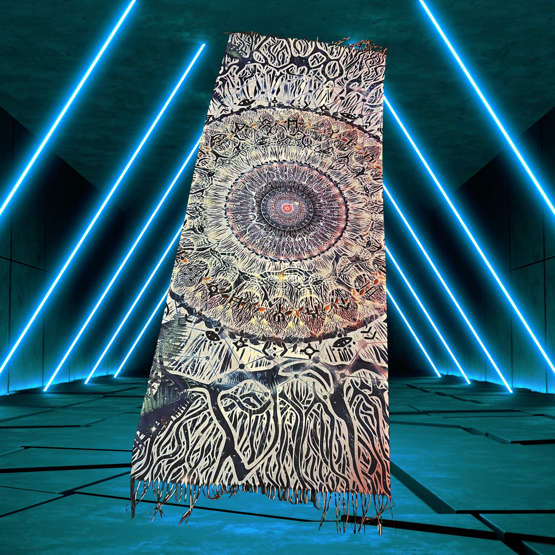 Introducing the Star Fire Pashmina, a vibrant and eye-catching accessory designed to ignite your festival experience. Featuring a mesmerizing pattern of a sun going supernova, this pashmina boasts a psychedelic, cosmic vibe that will surely turn heads.